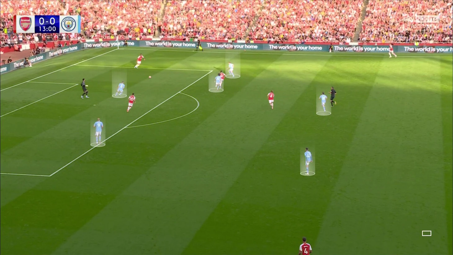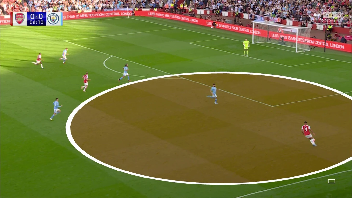 Отсутствие Сака и Мартинелли в первую очередь выражалась в нехватке угрозы при открываниях за спину. Обычно за рывки против высокой линии защиты отвечает Мартинелли, но может и Сака. Без них «Сити» мог особенно смело идти в прессинг – без опасения получить острое открывание против высокой линии защиты.