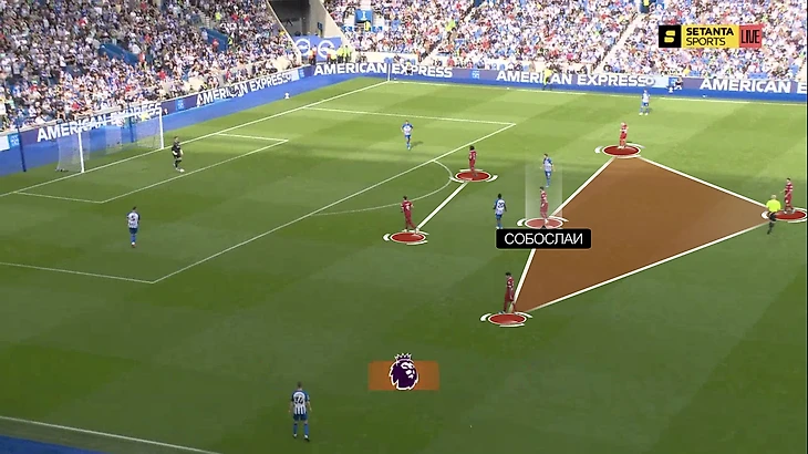 Клопп предложил более интересную модель: зонное давление, в котором полузащита «Ливерпуля» перестраивается на ромб. Самые важные полномочия получил Доминик Собослаи, которому приходилось следить за двумя опорниками «Брайтона»: