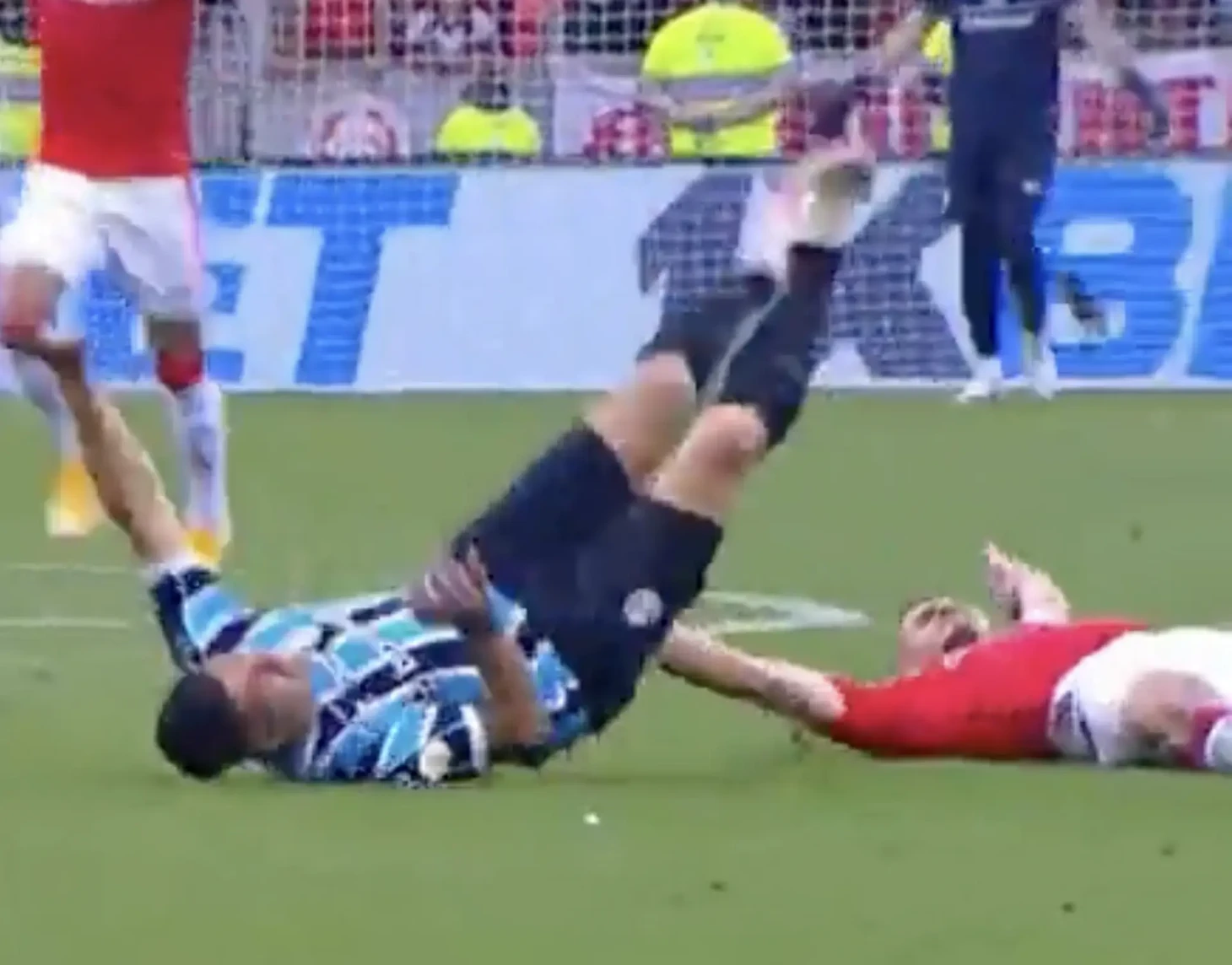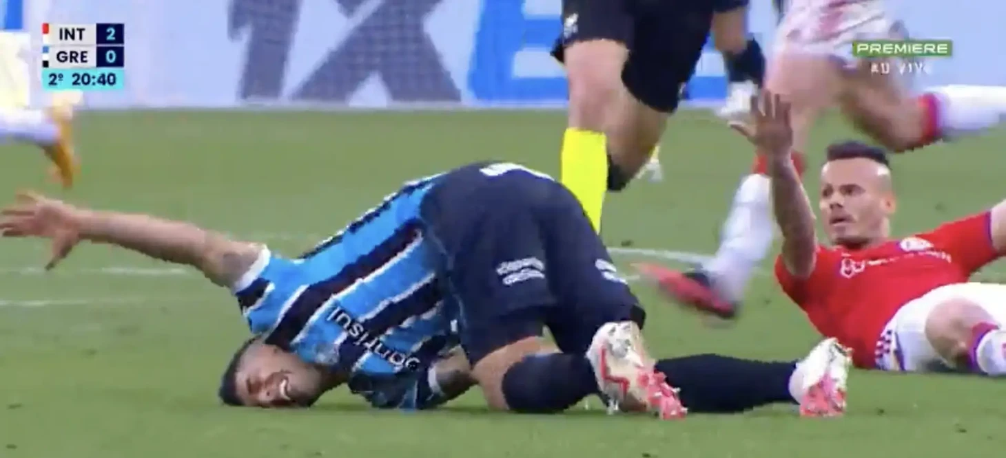 📸Суарес после «фола» решил показать что-то из брейк-данса. Соперник из «Интернасьоналя» не оценил