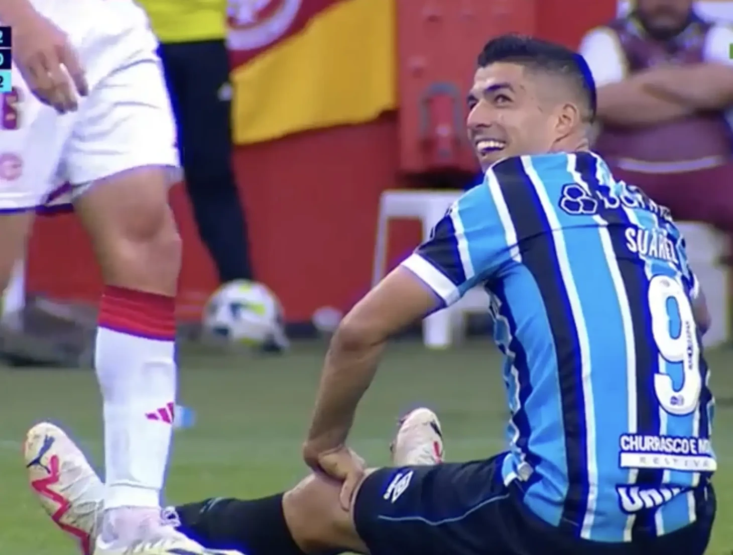 После того как игроку «Интернасьоналя» показали желтую карточку, Суарес посмотрел на него таким взглядом. Шалость удалась!