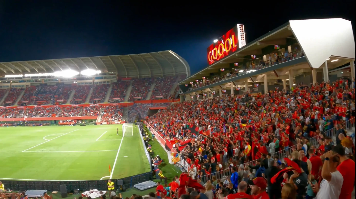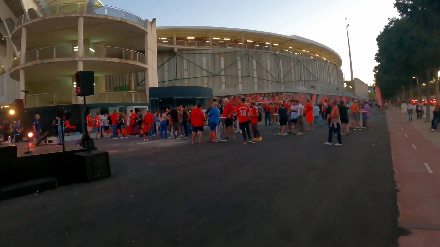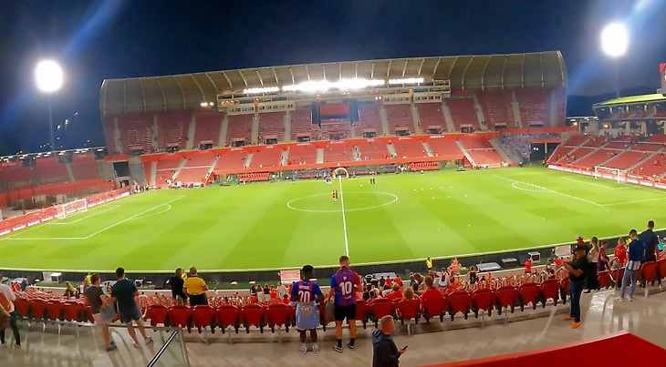 С виду стадион выглядит огромным, но вмещает всего 23 142 человек, к тому же 1 трибуна за воротами на ремонте, это минус около 3 000 болельщиков. Итог болельщиков на матче - 20 000.