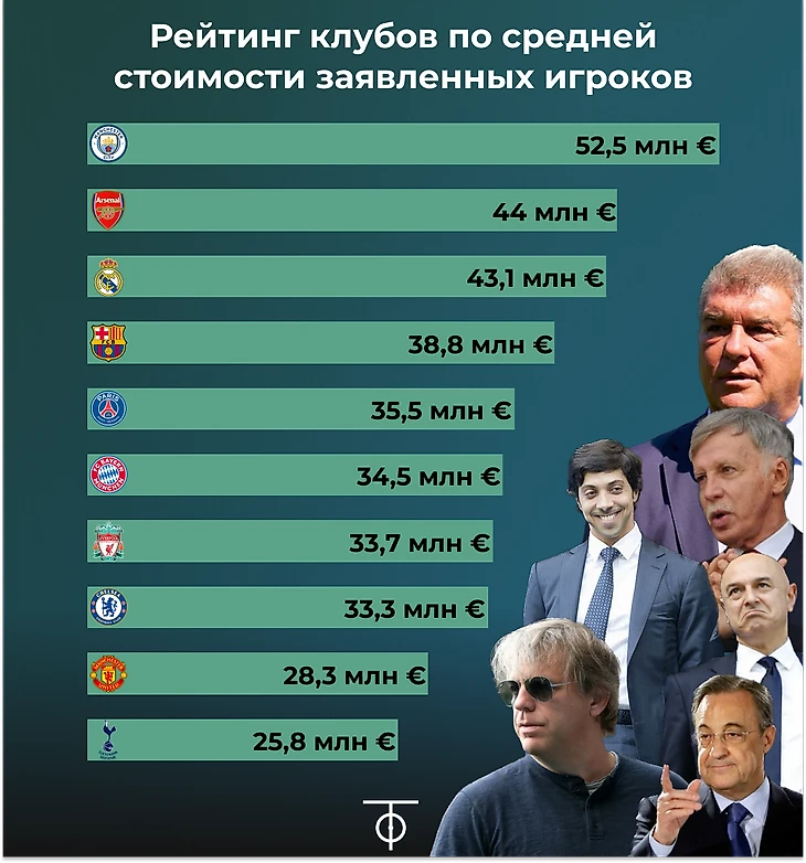 У Барсы же, к примеру, заявленных — всего 21. И общая стоимость этих футболистов — 814 млн. Однако разница между командами целых 9 игроков.