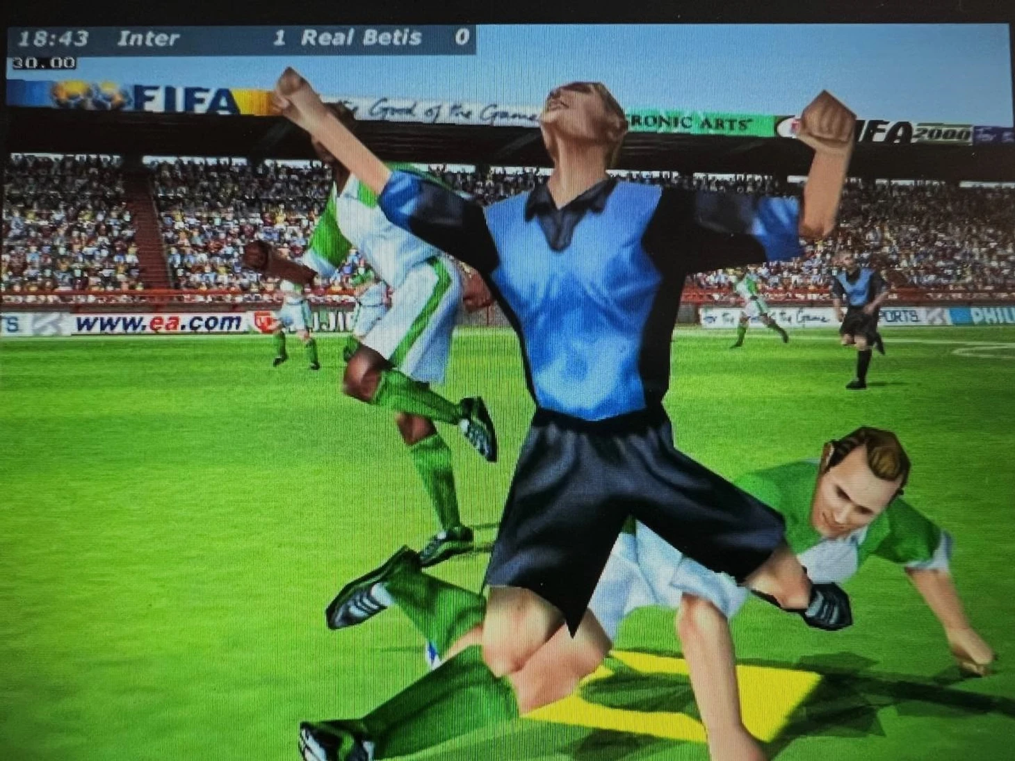 Сейчас, в 2023 году, графика «FIFA 99» кажется просто чудовищной. Квадратные человечки бегали по полю, словно роботы. Как-то я показывал фрагменты этой игры моему семилетнему сыну, и он удивлялся: «папа, почему эти футболисты совсем не похожи на настоящих людей»?