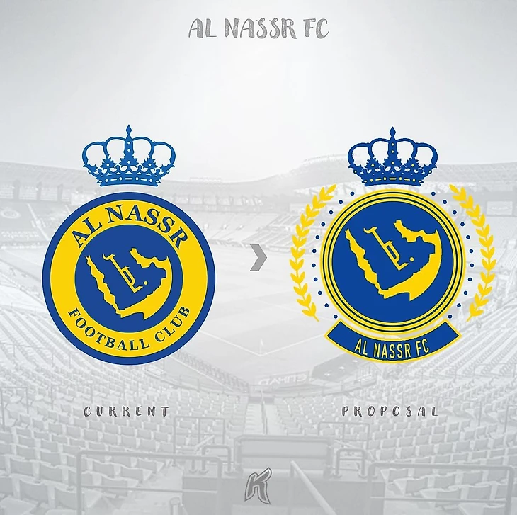 Аль-Наср. Я считаю, что нынешний лого является лучшей версией себя. Он одновременно и не перенасыщен, и не очень минималистичен. В концепте же преобладает синей и большое кол-во дополнений вокруг щита, что немного выбивает его из футбольной тематики.