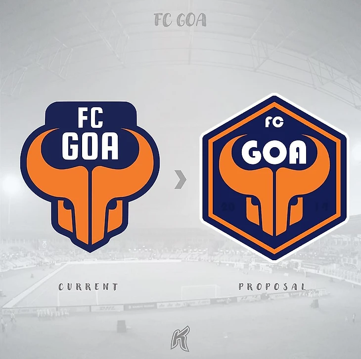 Гоа. В этом концепте было проделано намного меньше работы, чем в других. Быка поместили в шестиугольник и поменяли шрифт. Получилось вполне неплохо, но старая эмблема выглядит поинтереснее.