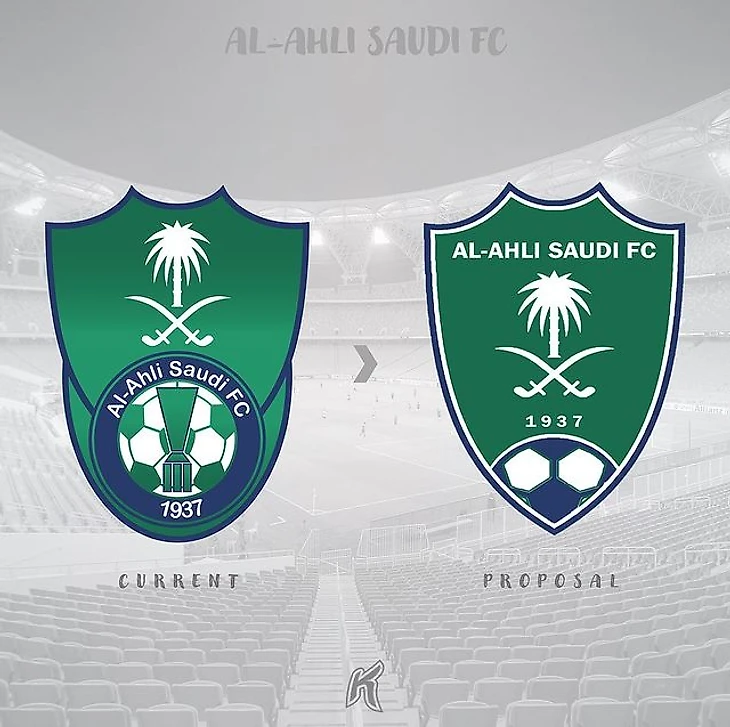 Аль-Ахли. Логотип саудовского клуба имеет довольно интересный градиент, который сильно не выделяется и не мешает восприятию эмблемы. Изменить можно лишь круглый герб, но прочие дополнения меняют ситуацию. Концепт выглядит слишком простым, по сравнению с оригиналом.
