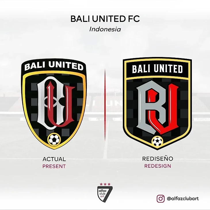 Бали Юнайтед. Тяжело говорить об этом концепте — вроде бы форма букв стала лучше, и сами они не бледные, но темно-серый не сочетается с окружением. Шрифт и герб выдались добротными.