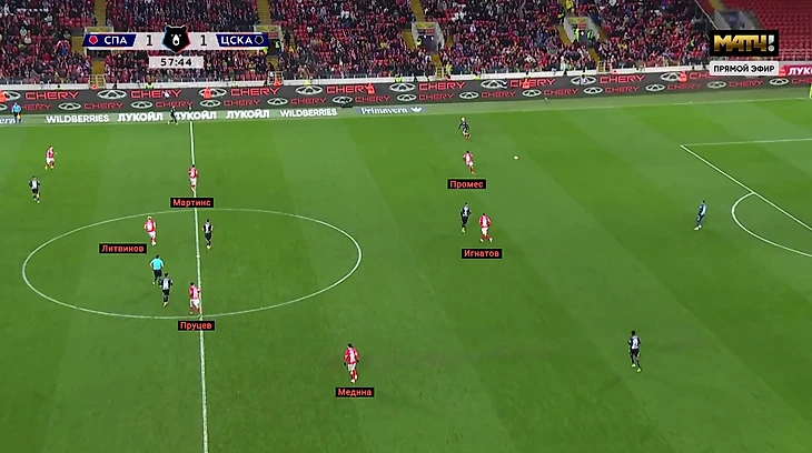 После двойной замены Мартинс ушёл на левый фланг, Медина вернулся направо, а в паре с Промесом играл Игнатов.