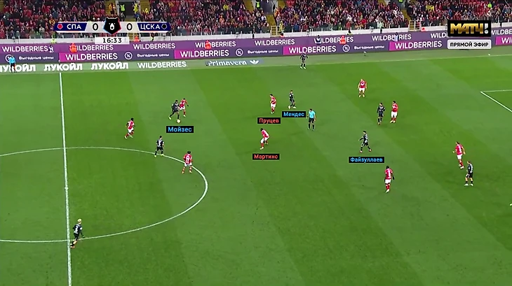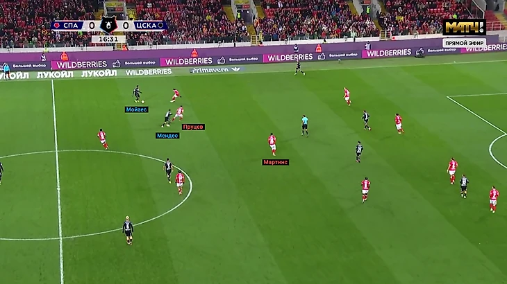 Из-за пассивности нападающих «Спартака» без мяча бразилец оставался без опеки, а перед голом место в тройке ЦЗ занял Мендес. Это тоже повлияло на эпизод, ведь Медина ориентировался именно на Мендеса и поэтому находился в высокой позиции.