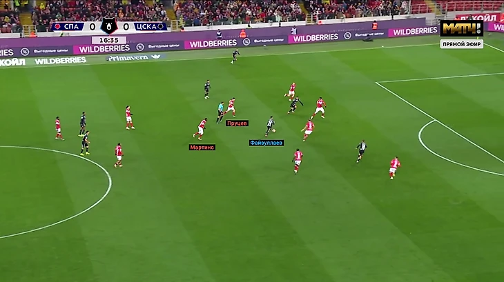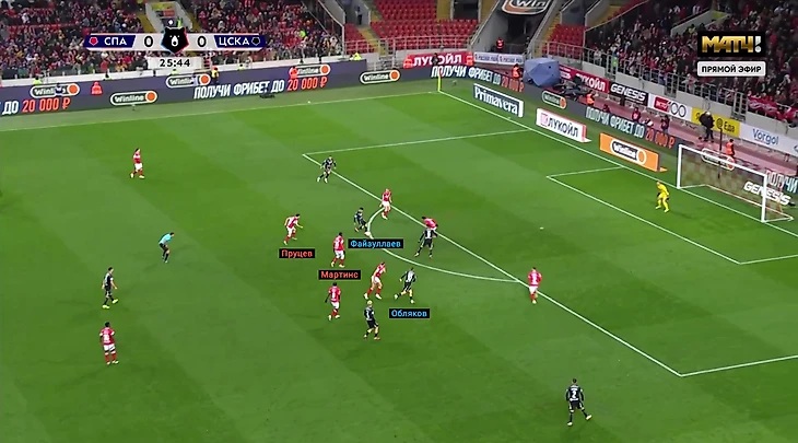 Если быстро выходить на чужую половину поля не получалось, армейцы растягивали линию из четырёх полузащитников «Спартака» и пользовались отсутствием чистого опорника.