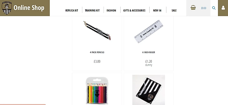 Отличный интернет магазин клубной атрибутики, в котором можно приобрести актуальный комплект формы. «Ноттс Каунти» порадует своих преданных болельщиков фирменной одеждой; неожиданно было увидеть в продаже товары для школьников в чёрно-белом стиле: рюкзаки, ручки и карандаши, линейки и др. Из необычных товаров: мячики для гольфа, одежда для малышей. Также на сайте можно пожертвовать один фунт, тем самым помочь «Британскому фонду сердца» (BHF). Среди прочего, в клубном магазине продается книга об истории команды под названием «Пролетая над гнездом сороки».