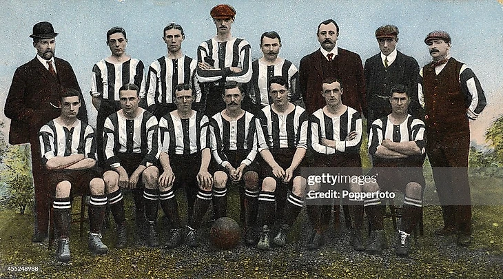 Теперь немного об истории команды «Ноттс Каунти». Клуб считается самым старым в мире, в 1888 году «Ноттс Каунти» стал одним из 12 клубов, основавших английскую футбольную лигу. В первом сезоне клуб финишировал на предпоследнем месте. Высшее достижение «сорок» в чемпионате произошло в том же XIX веке – команда дважды занимала третье место, в 1891 и 1900 годах. Черно-белые цвета появились на футболках «Ноттс Каунти» не сразу; изначально были горизонтальные полосы черного и оранжевого цветов, а затем сине-коричневая форма. Лишь в 1890 году появилась знаменитая форма в черно-белую вертикальную полоску. Считается, что именно у «Ноттс Каунти» был позаимствован дизайн и цвета футболок «Ювентуса» в 1903 году после отказа туринского клуба от быстро выцветавшей розовой формы.