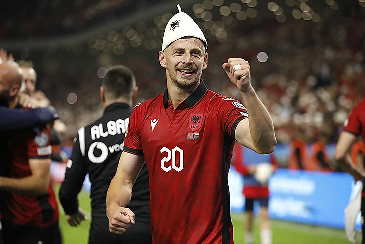 ● Матч дня в этой группе – Албания против Чехии. Ясир Асани забил на девятой минуте и отпраздновал в кече – албанском головном уборе.