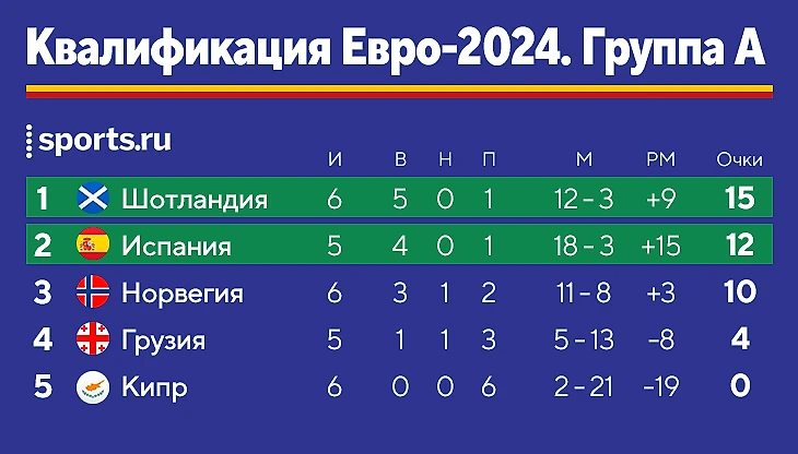 Шотландцы переведут дух до ноября – 15 октября они не сыграют. В этот день Грузия примет Кипр, а Норвегия – Испанию.