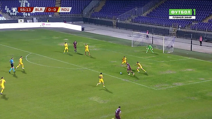 ● Сборная Беларуси принимала Румынию в венгерском Уйпеште. На пустом стадионе, да еще и с таким полем: