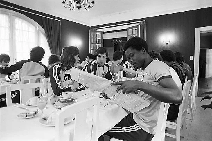 (прим. - Омар Санун умер 21 апреля 1980 года…В августе 1977 Идальго заявил, что Санун является частью основной команды, конкурируя за место в составе с Кристианом Синагелем. Именно тогда, 23 августа, в ходе подготовки к матчу с «Гамбургом», прямо во время тренировки он упал на футбольное поле в результате сердечного приступа. Его карьера прервалась на пять месяцев. Омар Санун вернулся в строй в начале 1978 года, объявив себя пригодным для футбола. Мишель Идальго не забыл о нем, вызвал на товарищеский матч с Португалией, затем включил в список из 40 кандидатов, направленный в ФИФА в апреле, и предоставил футболисту возможность сыграть один тайм против Ирана. Этот матч оказался для Сануна шестым и последним в футболке французской сборной. Он не вошел в окончательную заявку на поездку в Аргентину. 21 апреля 1980 года во время обычной тренировки в составе «Бордо» с Сануном случился второй сердечный приступ, в результате которого футболист скончался…