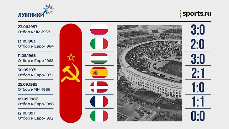 Чуть ниже вы найдете подборку, которую мы назвали «Топ-10 удачных решающих матчей отборочных турниров нашей сборной в «Лужниках» (не просто победных, а именно удачных — потому что включаем сюда и выгодные нам ничьи). Семь из них относятся к периоду ещё СССР, три – уже к России. А пока: