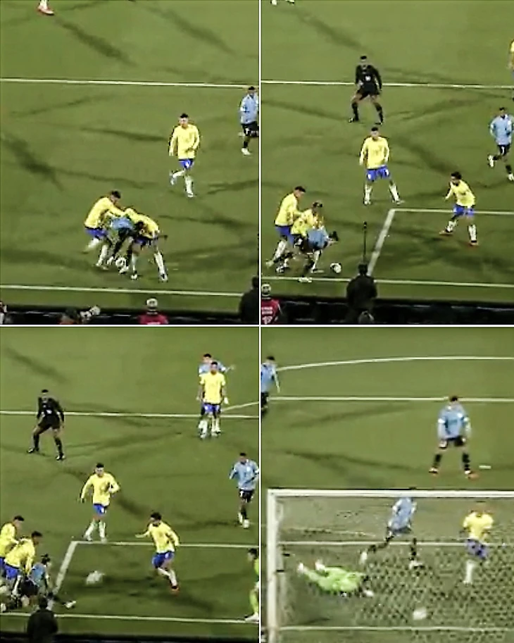 На 77-й минуте окончательный счет установил Де ла Крус, однако весь момент создал именно Дарвин. Форвард возился с мячом у линии ворот, причем вел борьбу сразу с двумя бразильцами.