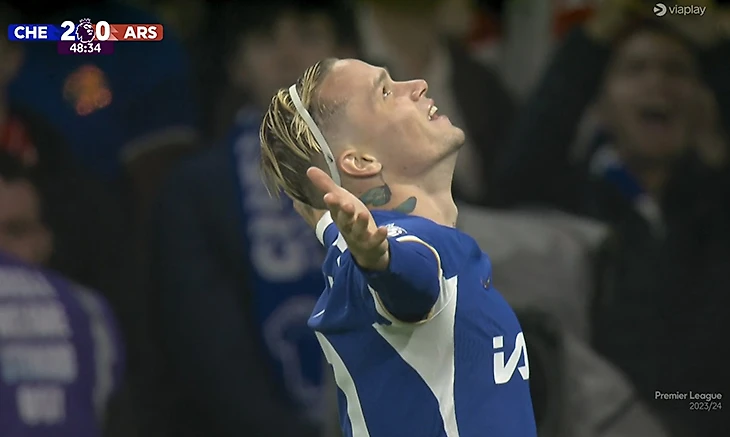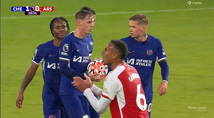 Уже на 10-й минуте «Челси» забил: Вильям Салиба сыграл рукой после удара Мудрика головой. Бить уверенно пошел Коул Палмер, но Рахим Стерлинг пытался выхватить у него мяч, несмотря на четкое распоряжение Энцо Фернандеса.