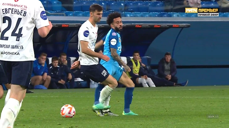После перерыва Клаудиньо и Рахманович пересеклись снова – теперь уже зенитовец скосил игрока «Крыльев».