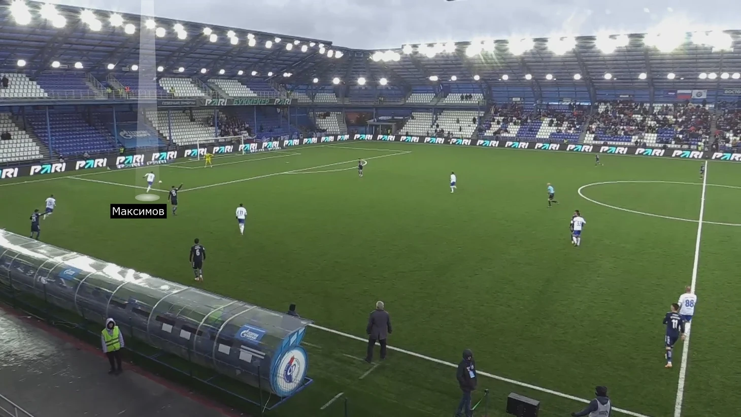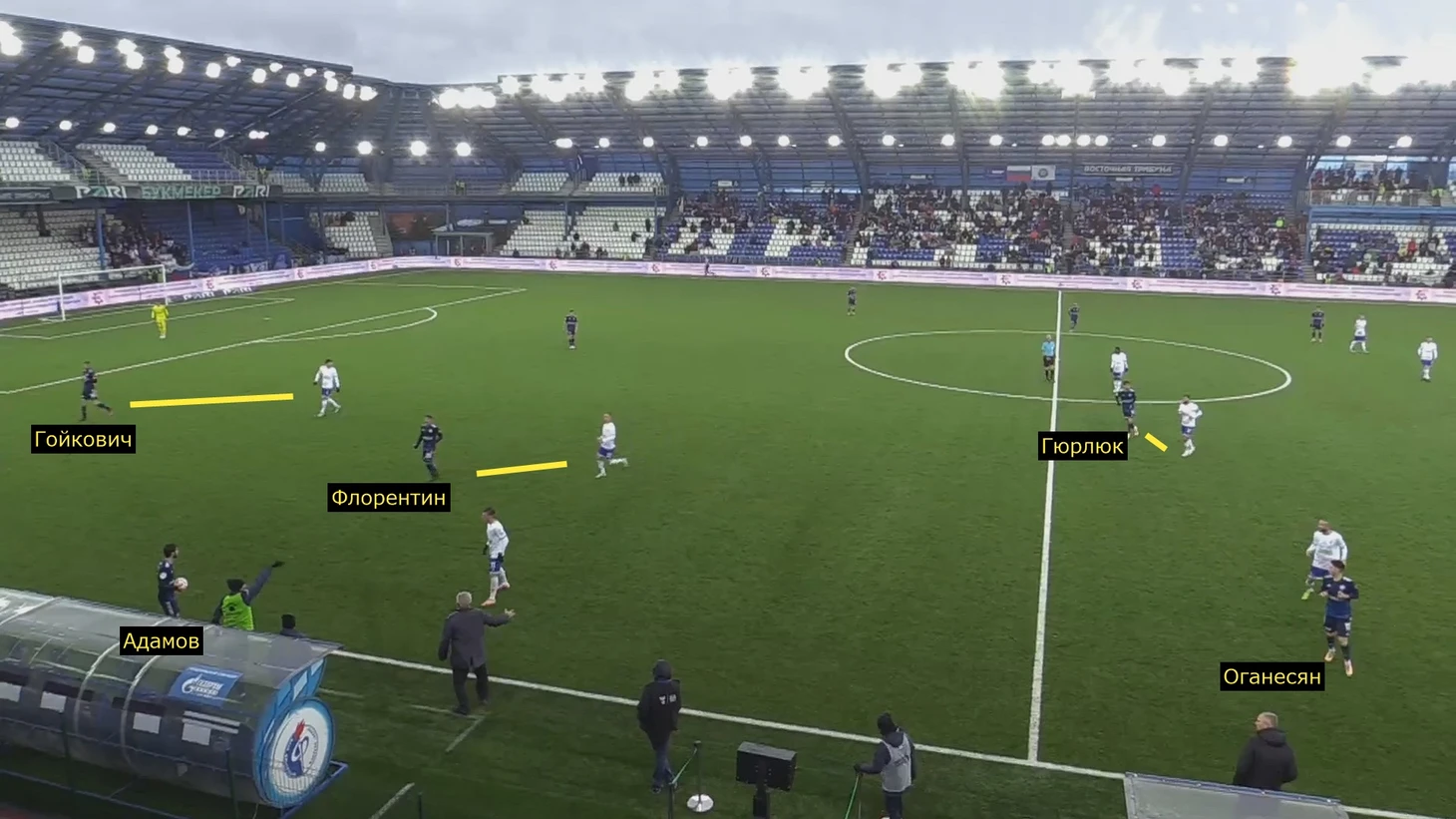 3. Арсен Адамов вбрасывал аут: в этот момент Ренато Гойкович и Сесар Флорентин с опекунами, впереди под давлением Степан Оганесян и Гюрлюк.