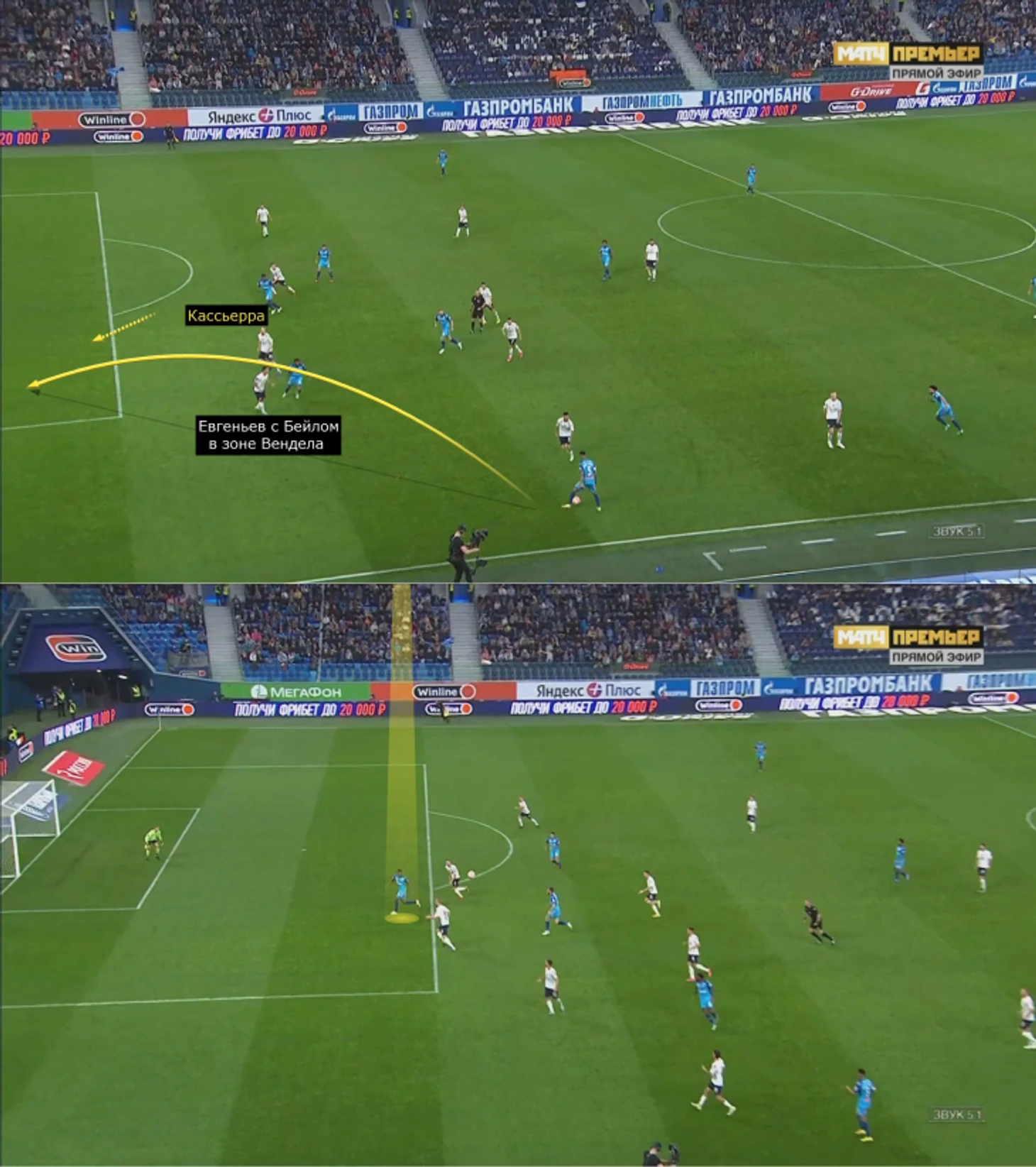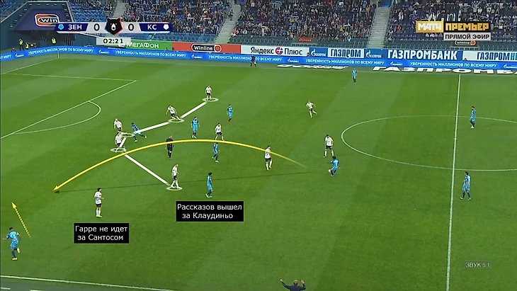 Например, в этом эпизоде вбегал Дуглас Сантос: Вильмар Барриос заметил свободную зону благодаря Клаудиньо, вытянувшему Николая Рассказова.