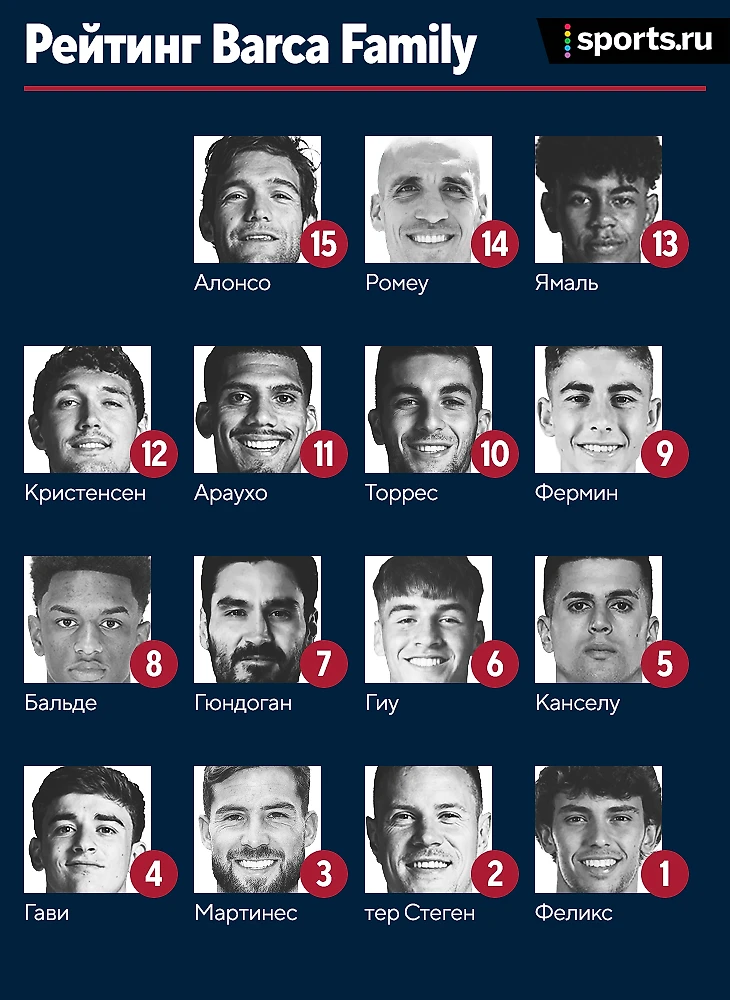 15. Маркос Алонсо – вышел на замену в концовке и остался незамеченным. 14. Ориоль Ромеу – очередной сложный матч для опорника, который часто плывет под давление, особенно, когда рядом нет Френки де Йонга. 13. Ламин Ямаль – немного украсил игру своим выходом, но допустил ряд «детских» ошибок и не реализовал очень солидный момент. 12. Андрес Кристенсен – среди трех центральных защитников этого матча датчанин был худшим.