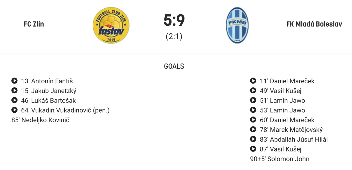 В Чехии на выходных сыграли аномально результативный матч: «Фастав Злин» и «Млада-Болеслав» сыграли 5:9, настреляв друг другу рекордные 14 мячей! И да, это Высшая лига. И по-прежнему футбол.