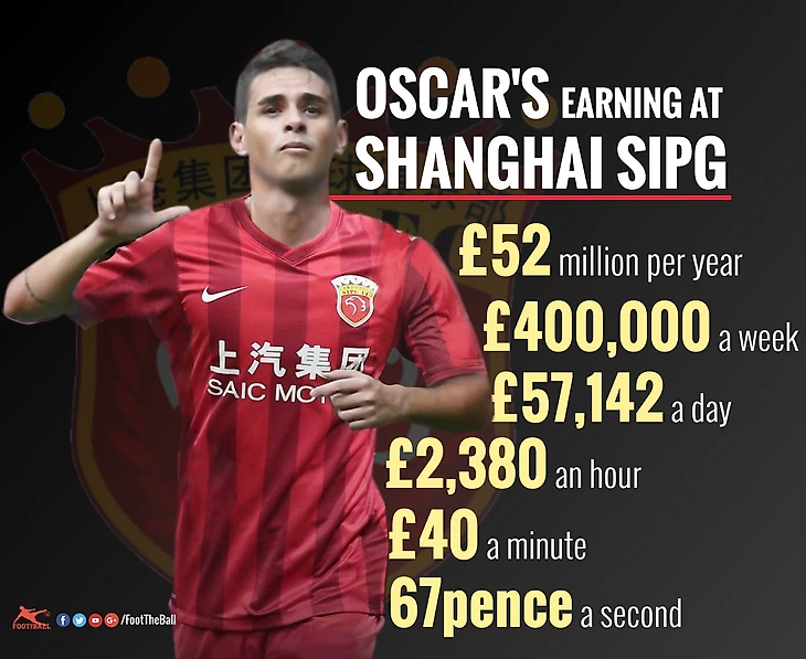 Отдам должное, Оскар честно признался, что ему наплевать на выступления за сборную, игру и победу на ЧМ и реализацию амбиций, только платите много да вовремя. Так 7 лет и получалось - китайцу охотно и добросовестно перечисляли в год 20 миллионов чистыми, что просто идеальный вариант для самого футболиста: хочешь играй в полноги и зарабатывай миллионы, надоест такой образ жиза/соскучишься по Европе или Бразилии - начни филонить, тогда с тобой просто разорвут контракт, заплатят неустойку и отпустят на все четыре стороны.