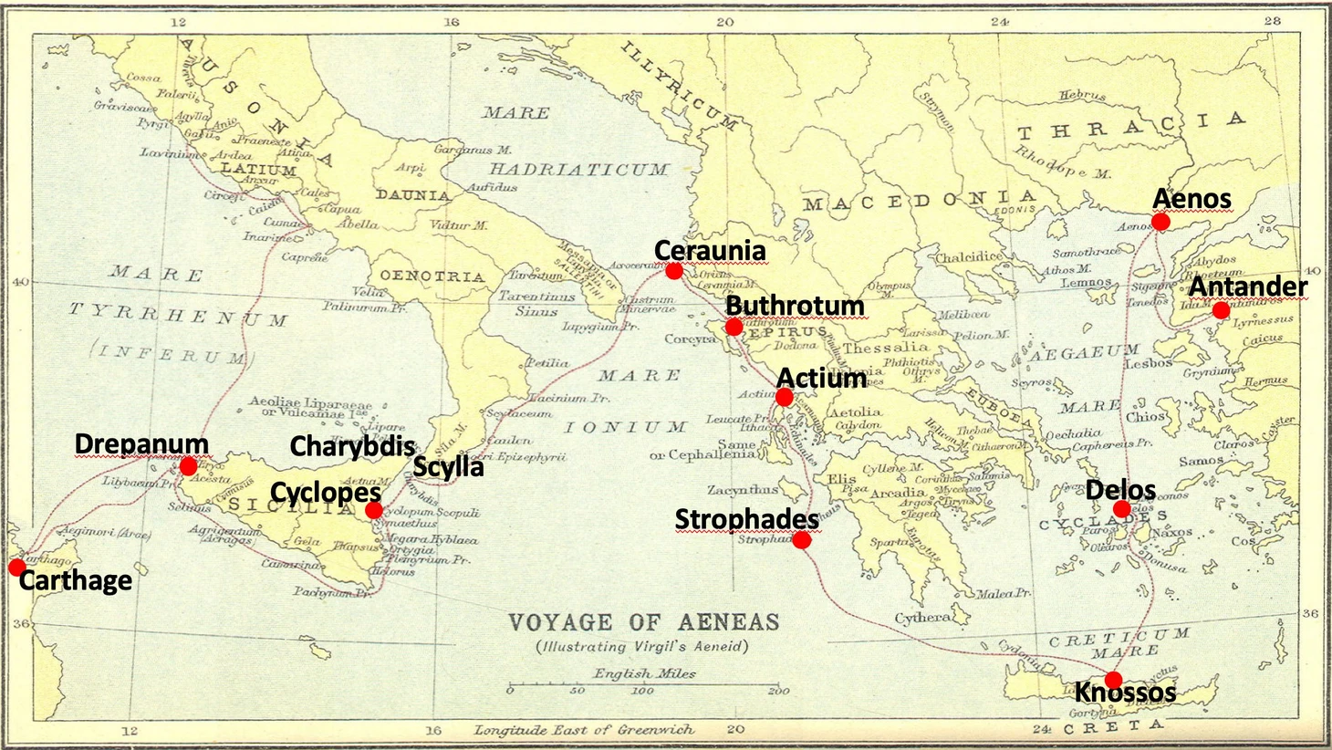 «Энеида» – почти как «Одиссея» Гомера. Отправной точкой сюжета стало падение Трои (историки предполагают, что это произошло примерно в 1184 году до н.э.). Эней был одним из защитников древнего города и по совместительству – сыном Венеры. Он собрал оставшихся в живых троянцев и по настоянию богов отправился в длительное плавание. Сначала корабли прибыли во Фракию, затем к оракулу на острове Делос, следом – на Крит. И прошли вдоль западного побережья Греции – к «подошве» итальянского сапога.