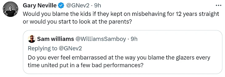 Ф: «Тебе когда-нибудь было неловко из-за того, что ты обвиняешь Глейзеров каждый раз, когда «Юнайтед» выдает несколько плохих матчей?»