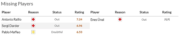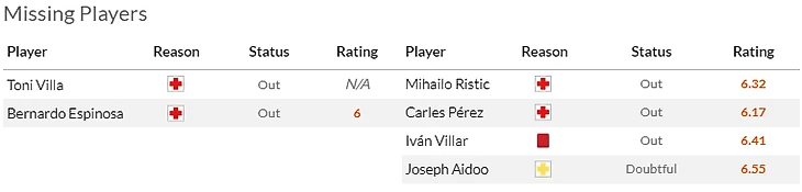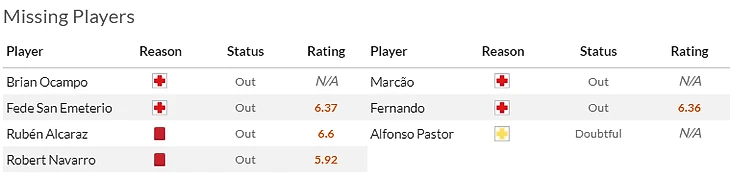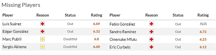 Правда завтрашний выезд осложняется отсутствием травмированных Арамбарри(6), Гастона Альвареса(5.5) и Дамиана Суареса(6). С другой стороны островитяне оперативно отшаманили своего основного правого латераля Пабло Маффео(5,5).