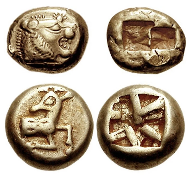 Со временем лидийцы научились обрабатывать электрум и делить его на золото и серебро. И так создали первые монеты из чистого золота.