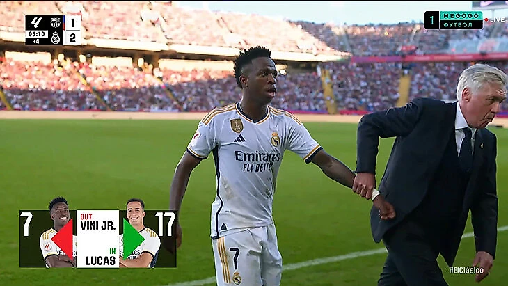 Он буквально тащил Винисиуса с поля на скамейку. Как папа взбесившегося сына.