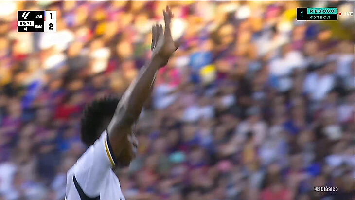 Та же поза Винисиуса – только уже с меньшим вызовом для трибун.