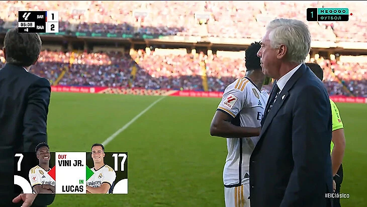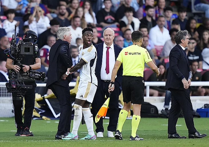 Винисиус издевался над фанатами «Барсы» – в ответ на оскорбления. Анчелотти пришлось уводить его за руку