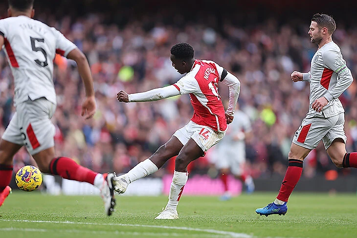 После перерыва – забил третий фантастическим ударом из-за штрафной. Нкетиа – первый с 2015-го англичанин с хет-триком за «Арсенал» в АПЛ. Предыдущим был Тео Уолкотт.