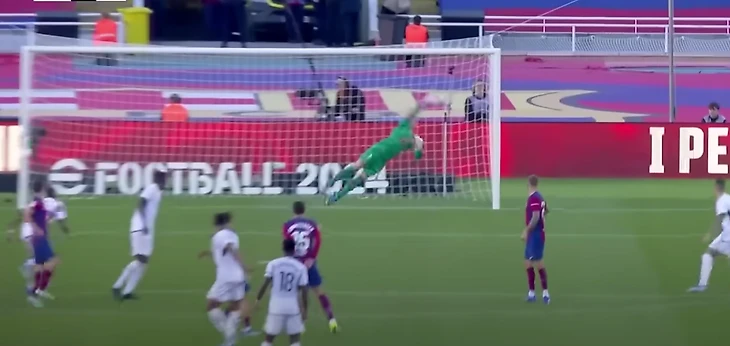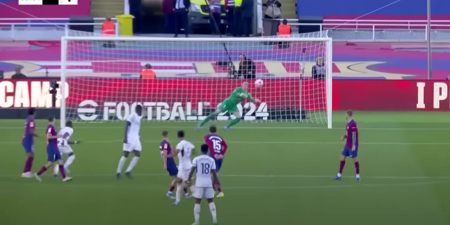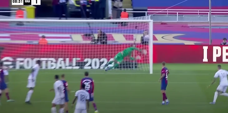 Немцу не хватило нескольких сантиметров, чтобы спасти этот мяч. Вратарь «Барсы» был очень близок к тому, чтобы совершить сейв мирового уровня.