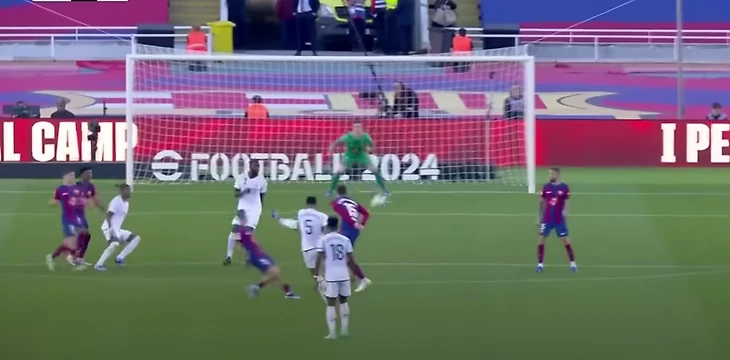 Марк-Андре тер Стеген, вероятно, мог лучше парировать удар Джуда Беллингема, но дело в том, что удар англичанина был не просто мощным – вдобавок он имел дикую траекторию и отклонялся в сторону, что затрудняло расчеты вратаря.