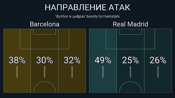 С мячом у команды Анчелотти был явный уклон на левый фланг (49%). С Винисиусом – это привычно. Более того, из-за оборонительной роли Вальверде на правом фланге было меньше опций для атаки.
