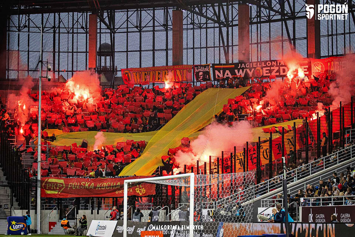 Белосточчане отмечали на этом выезде 20-летие первого выезда на поезде на матч «Ягеллонии». На своем секторе гости продемонстрировали оправу ''PKP - Польша любит пиро'', с отсылкой к аббревиатура PKP (Польские государственные железные дороги).
