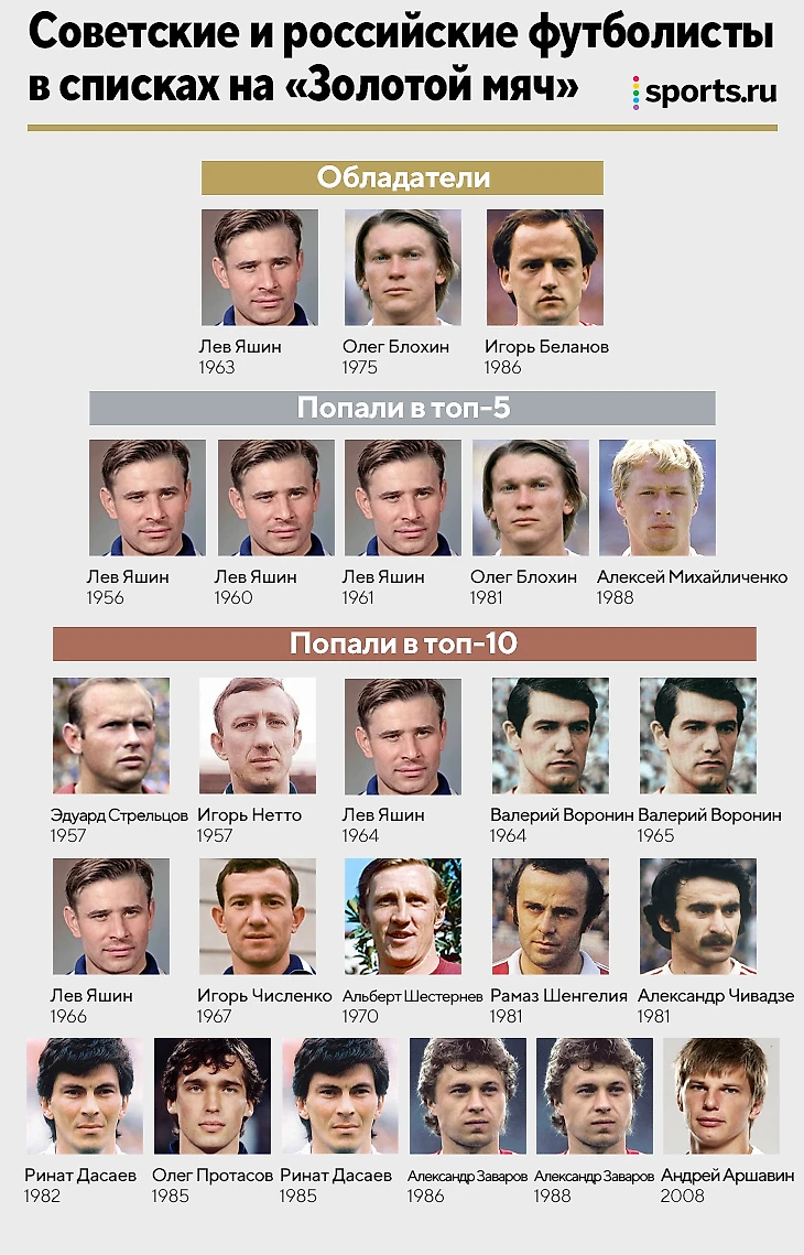 Советские и российские футболисты в списках на «Золотой мяч». В топ-5 – только СССР
