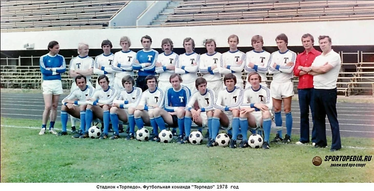 Позднее в 1980 к этой форме добавится новый выездной вариант и он так же выполнен в сине-белом сочетании. Вместо привычной литеры «Т» на груди появится большая надпись Торпедо.