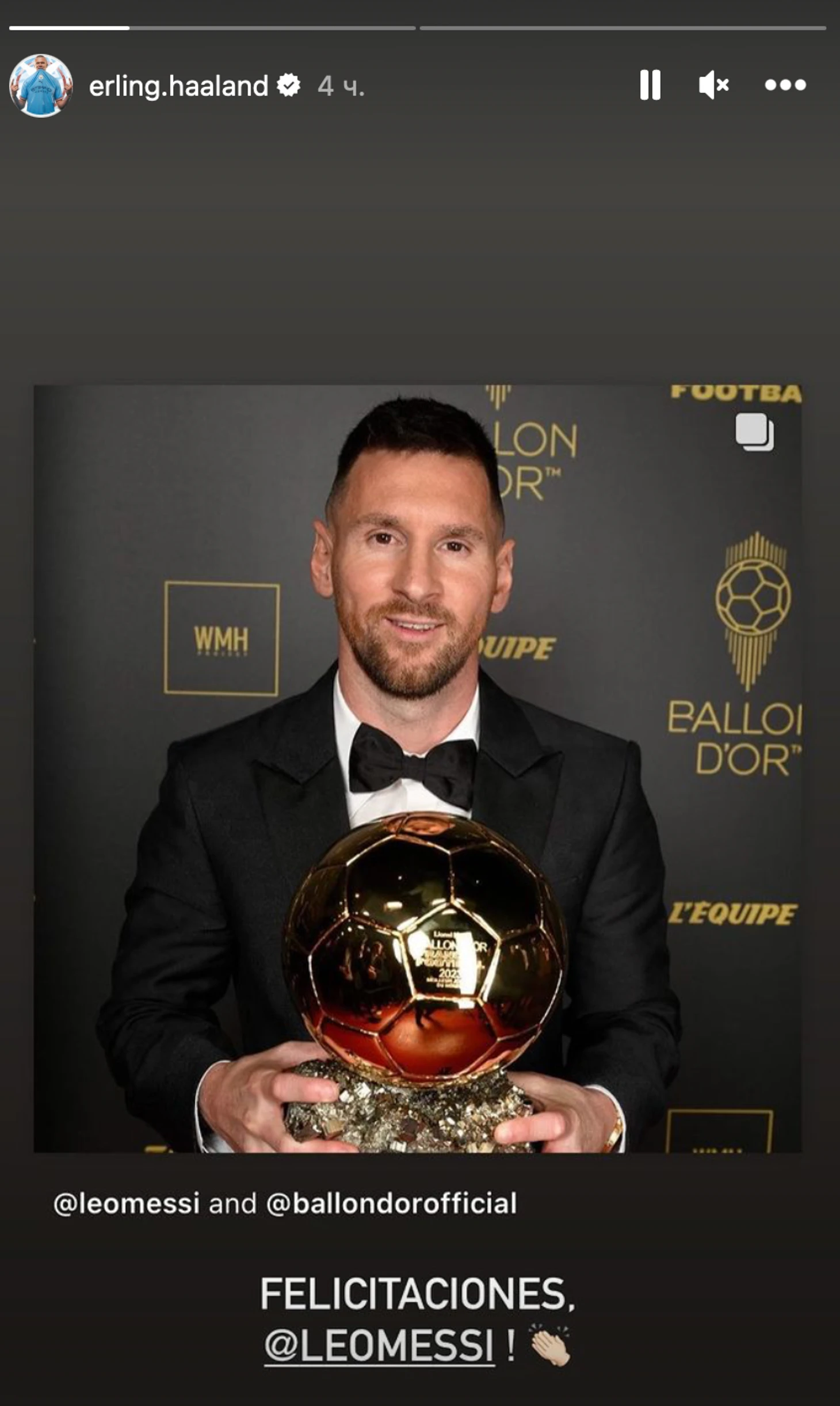 Холанд, наконец-то, прокомментировал итоги «Золотого мяча». Норвежец выложил фото Месси с трофеем