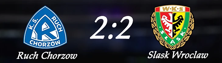 Уже на 4-ой минуте болельщики, собравшиеся на Шлёнском, стали свидетелями пропущенного мяча. После подачи со штрафного в исполнении Шварца выше других в штрафной выпрыгнул Бейгер. Гости продолжали держать матч под контролем, но уже не прижимали хожовян к их воротам, чем хозяева и воспользовались. Одна из контратак «Руха» закончилась слишком активной игрой локтем в исполнении Янасика в своей штрафной. После просмотра повтора арбитр указал на точку. К одиннадцатиметровой отметке подошёл Шчепан, экс-игрок «Шлёнска», и сравнял цифры на табло.
