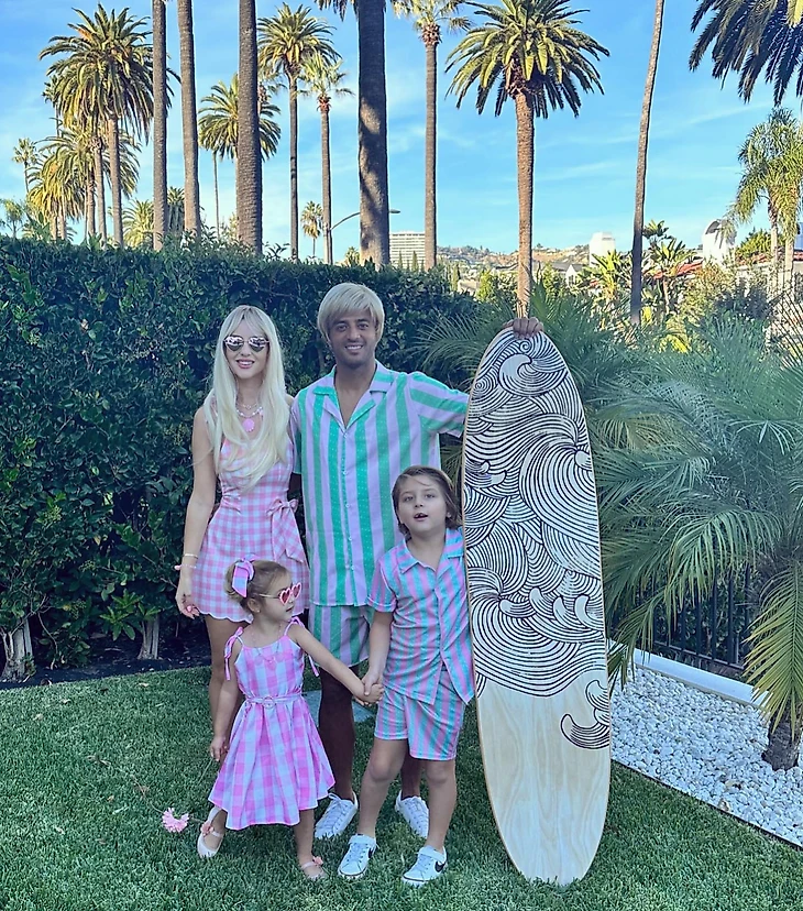 Карлос Вела и его семья влетели в празднование Хэллоуина сразу в двух образах. Это «Барби» и «Семейка Аддамс».