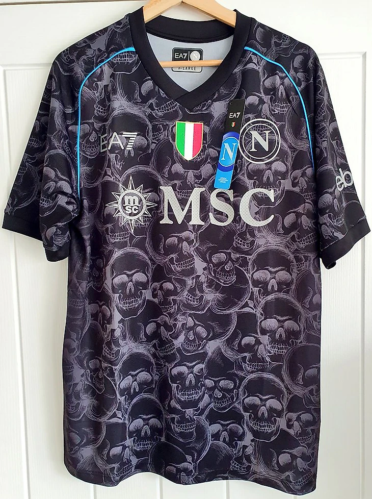 «Наполи» выкатил специальную форму: в Неаполе почитают культ мертвых, а подземные катакомбы, где располагается кладбище Фонтанелле – одна из главных достопримечательностей города. Черепа разместили на черных чемпионских футболках.