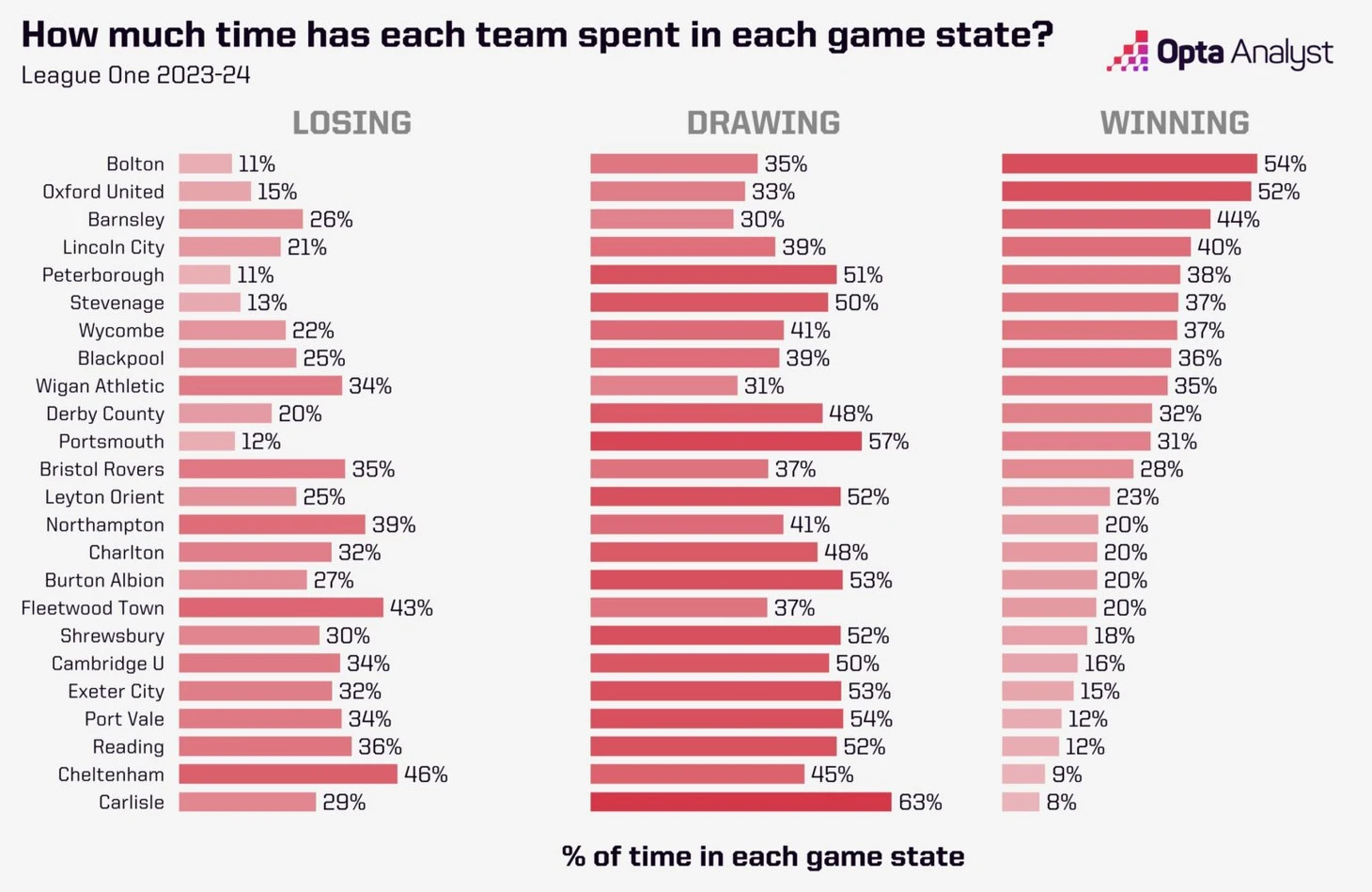 В прошлом сезоне «Плимут» стал чемпионом Лиги 1 – «пилигримы» набрали больше всех в лиге очков (27), проигрывая по ходу этих встреч. До этого в сезоне 2020/21 «Питерборо» финишировал вторым с 23 «волевыми» очками, которые команда набрала, несмотря на отставание в счете. А в сезоне 2019/20 «Ковентри» набрал больше всех очков (19), проигрывая по хочу матча, и стал в итоге чемпионом. Даже в сезоне 2021/22 «МК Донс» финишировал на третьей строчке и в одном очке от автоматического повышения, хотя были лидерами лиги по количеству очков, набранных в, казалось бы, проигранных матчах (25).