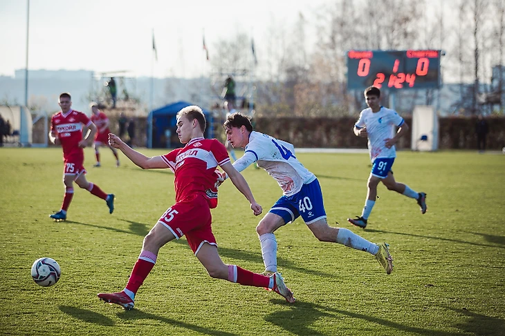 Однако «Спартаку» удалось забить дважды, причем в обоих мячах поучаствовали крайние защитники. В первом тайме Никита Постников здорово подключился в атаку и исполнил классный удар внешней стороной стопы. А во второй половине сработала связка Дмитрия Иванникова и Артёма Быковского: подача с фланга и гол головой.