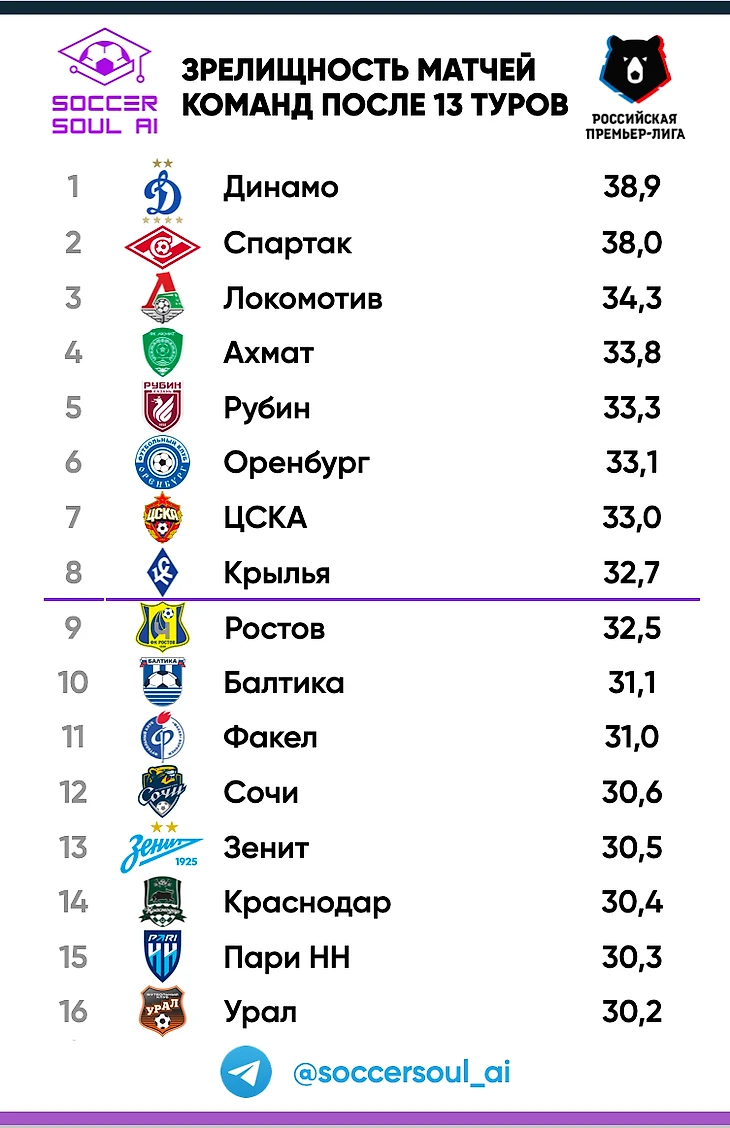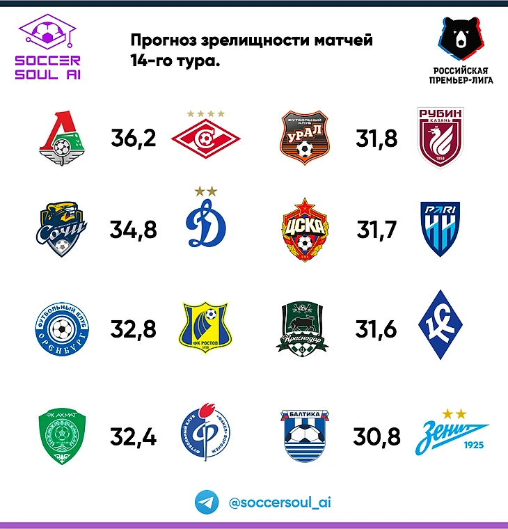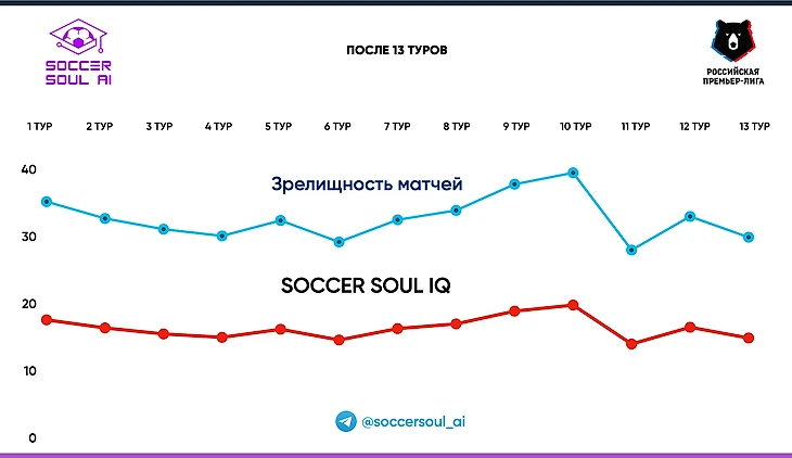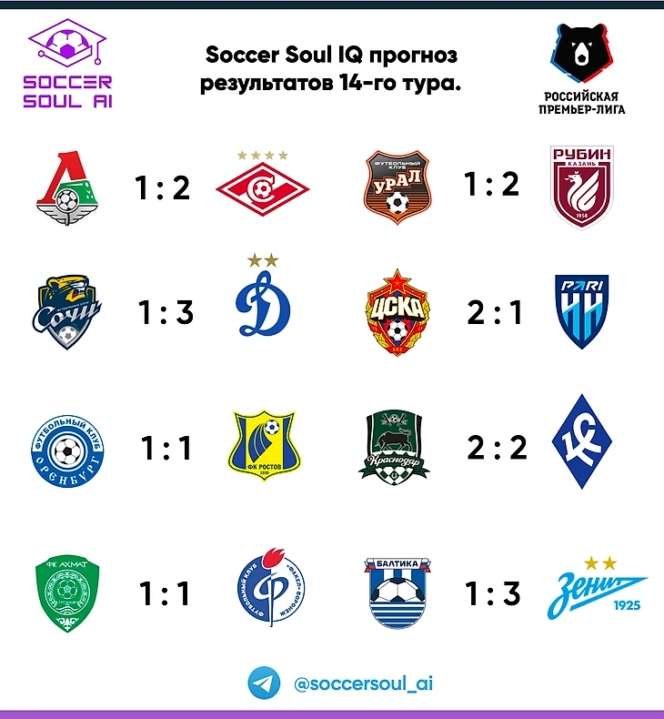 На матчи 14-го тура я представляю свой прогноз, основанный на анализе метрик Soccer Soul IQ команд за 13 предыдущих туров чемпионата.